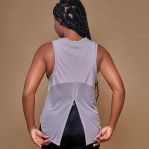 This lightweight vest features an open back with mesh detailing for maximum breathability and airflow. Its relaxed fit ensures comfort and movement during workouts, making it a perfect choice for warm-weather training or layering over your favorite bra.